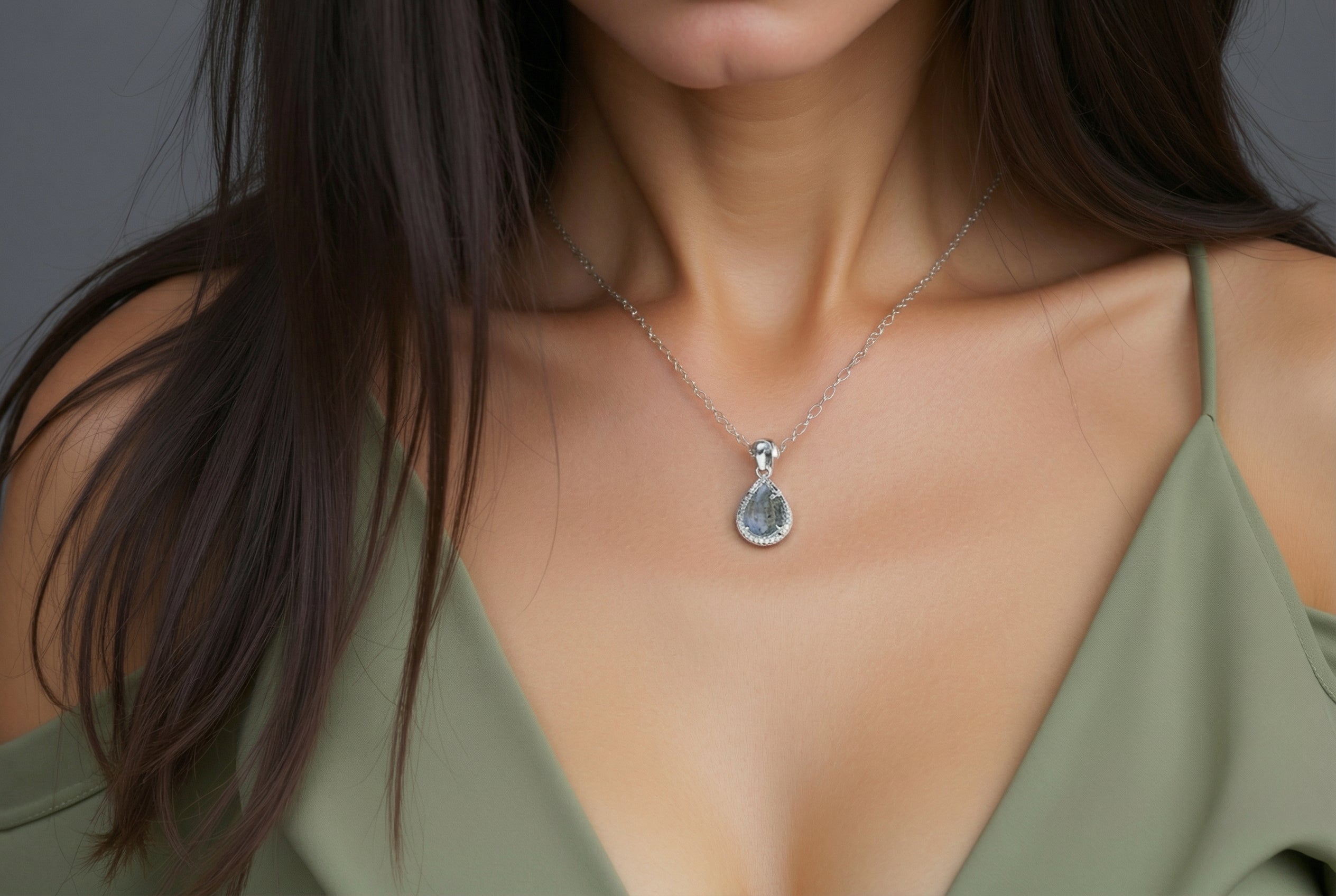 Labradorite Silver Teardrop Pendant